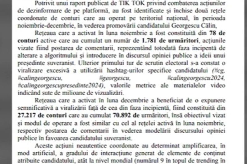 Eu nu am de unde să știu. Nu au făcut legătura dintre Georgescu și rusii. Nu a fost nicio problemă, ci acestea au venit după anularea alegerilor. Acest rechizitoriu confirmă că alegerile au fost anulate fără niciun motiv. Pentru că așa a vrut Iohannis cu gașca lui și cu Ilie Bolojan. Se spune că i-a instigat pe susținătorii săi să iasă să protesteze. De 20 de ori apare, în rechizitoriu, CSP, de 16 Realitatea Plus și de 13 ori Alexandrescu.