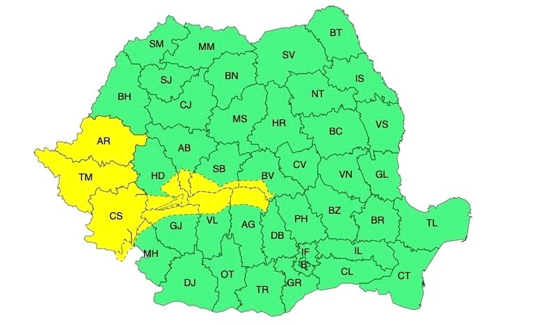 ATENȚIONARE METEOROLOGICĂ - COD GALBEN