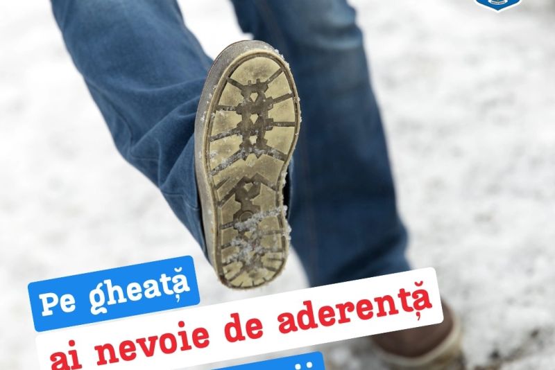 Inspectoratul General pentru Situatii de Urgenta (IGSU) avertizează că gheața formată în urma temperaturilor scăzute crește riscul de accidentări și le recomandă cetățenilor să poarte încălțăminte de iarnă cu aderență bună și să se deplaseze cu atenție sporită.