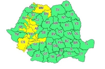 Cod galben de fenomene EXTREME. Județele lovite de ploi violente. Zonele unde temperaturile urcă la 29 de grade - HARTA
