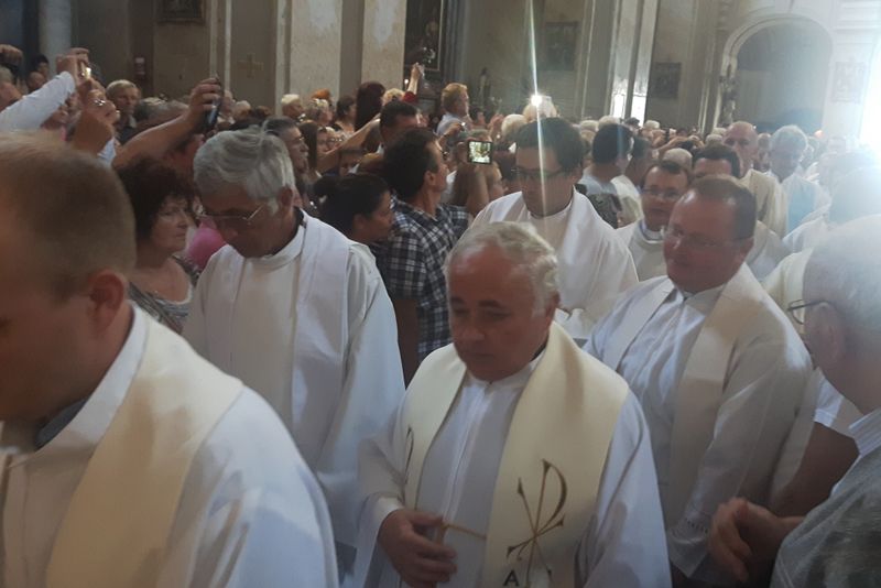 Slujbele au fost oficiate mai multe limbi, printre care maghiară, bulgară, germană, română şi croată. Astăzi, Sfânta Liturghie Pontificală în limbile română – maghiară – germană – a fost celebrată decătre capul Bisericii Catolice din Ungaria, Eminenţa Sa Cardinal Erdo Peter, Esztergom, E.S. Msgr. Böcskei László - episcop de Oradea Mare şi Episcp Emerit Msgr E. S. Dr. h. c. Martin Roos.