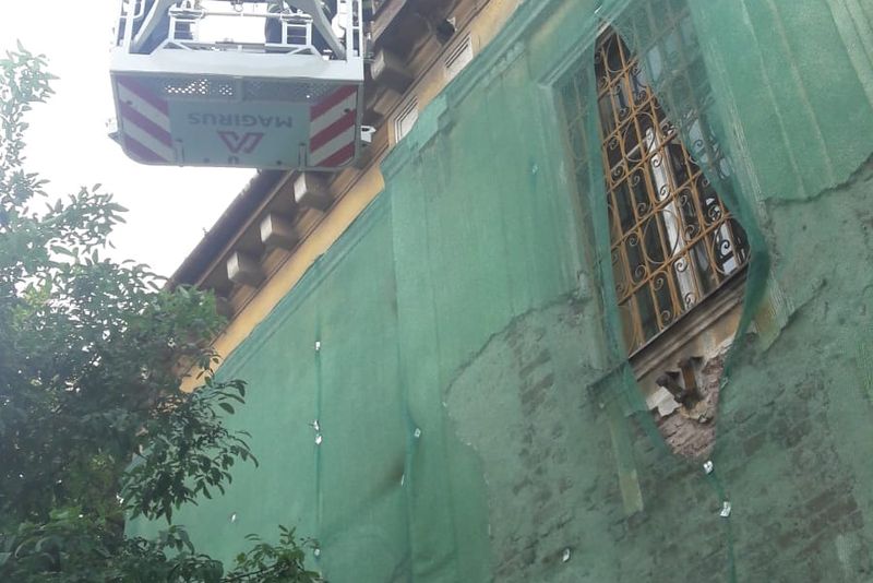 Conform Purtătorului decuvânt al Inspectoratului pentru Situaţii de Urgenţă Arad, maior George Pleşca, Detasamentul de Pompieri Arad a intervenit cu autospeciala de interventie si salvare de la inaltimi si 3 subofiteri pentru indepartarea mai multor elemente de constructie ce puneau in pericol integritatea trecatorilor.