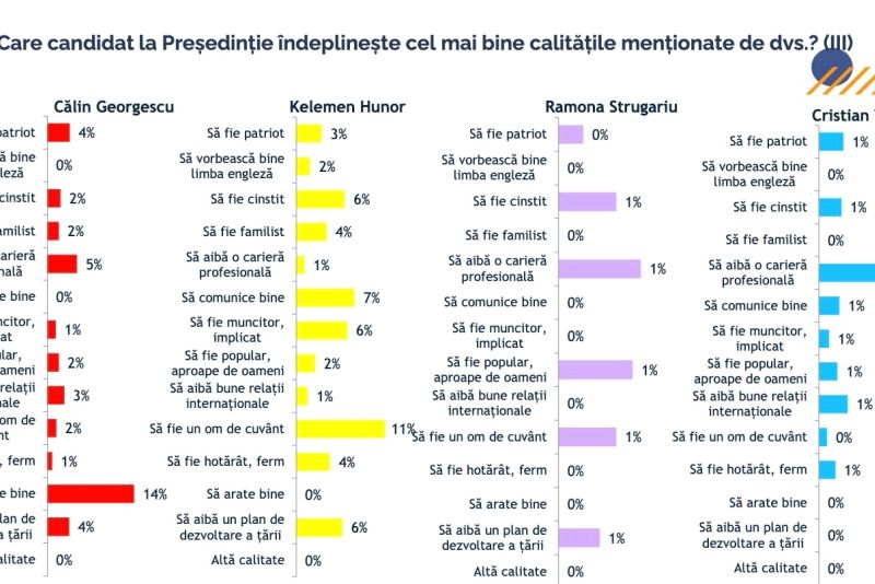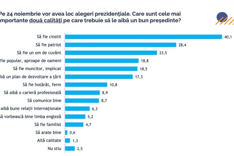 Întrebați ce își doresc de la viitorul președinte, majoritatea respondenților au indicat „să fie cinstit”, „să fie patriot” și „să fie om de cuvânt”.