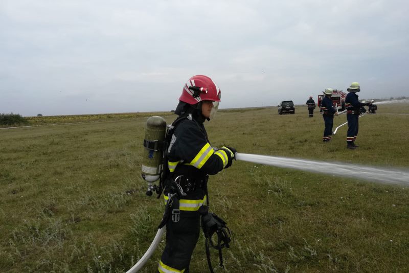 Pompierii din Arad se pregătesc pentru prăbuşirea unui avion militar
