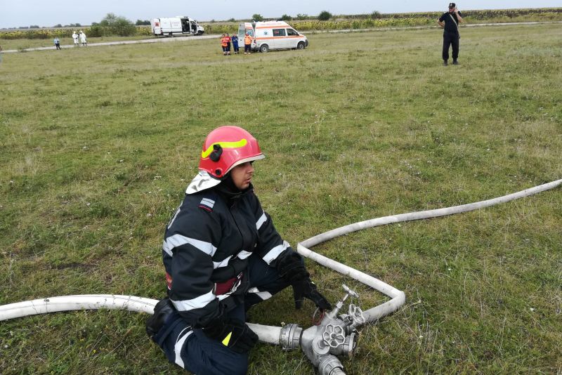 "Pompieri din cadrul Detașamentului de Pompieri Arad și Detașamentul de Pompieri Ineu in cooperare cu Jandarmeria Arad, Inspectoratul de Poliție Județean Arad, Batalionul 191 Infanterie Radu Golescu, SAJ Arad SVSU Siria și Aeroclubul Charlie Bravo Siria au desfășurat, miercuri, un exercițiu cu forțe și mijloace în teren. În cadrul exercițiului s-a testat capacitatea coordonare și de intervenție a forțelor operative in cazul producerii unui accident aviatic, urmat de explozie și incendiu", a declarat purtătorul de cuvânt al Inspectoratului pentru Situaţii de Urgenţă Arad, maior George Pleşca.
